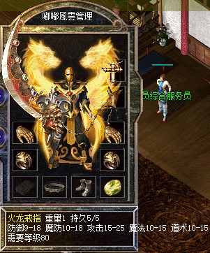 火龙腰带:防御15-25 魔防10-25 攻击10-25 魔法10-25 道术10-25 需要等级80