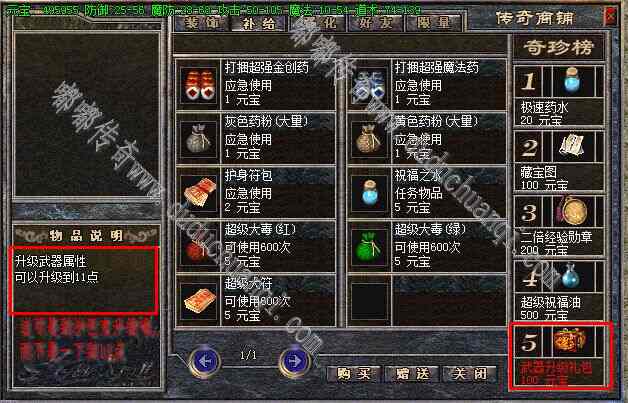 升级方式:沙巴克武器店